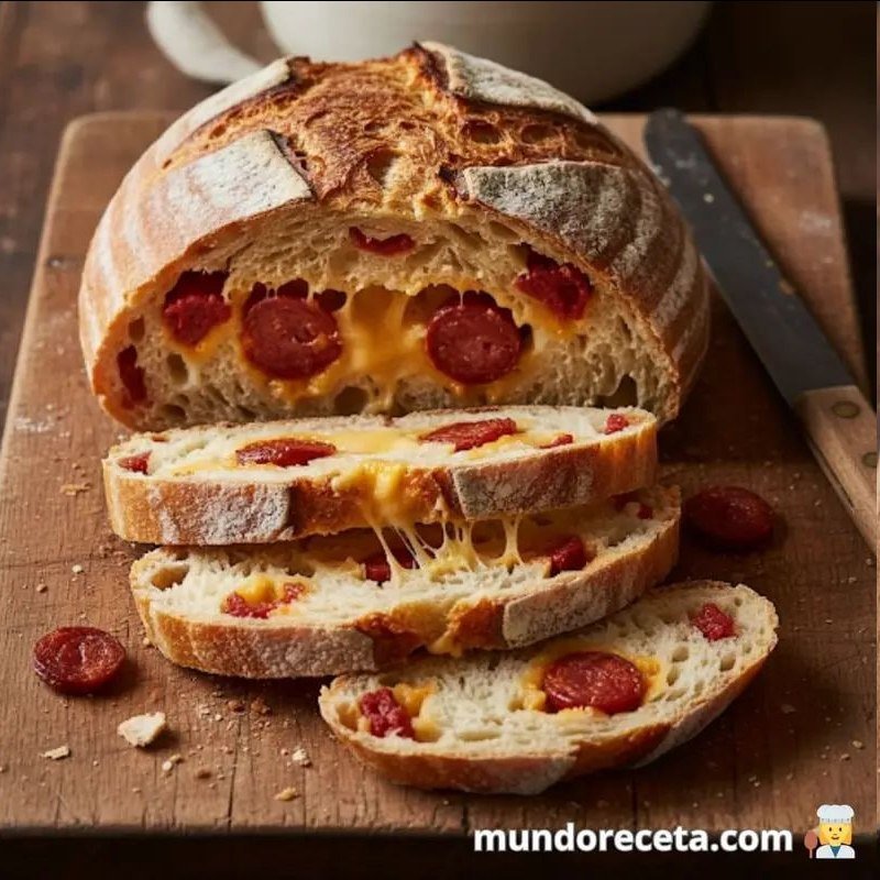 La combinación del chorizo salado y especiado con la riqueza del queso y la sencillez del pan es una sinfonía de sabores que te hará volver por más. Es un pan versátil que se disfruta mejor cuando está recién horneado y todavía tibio, con el queso todavía derretido.
